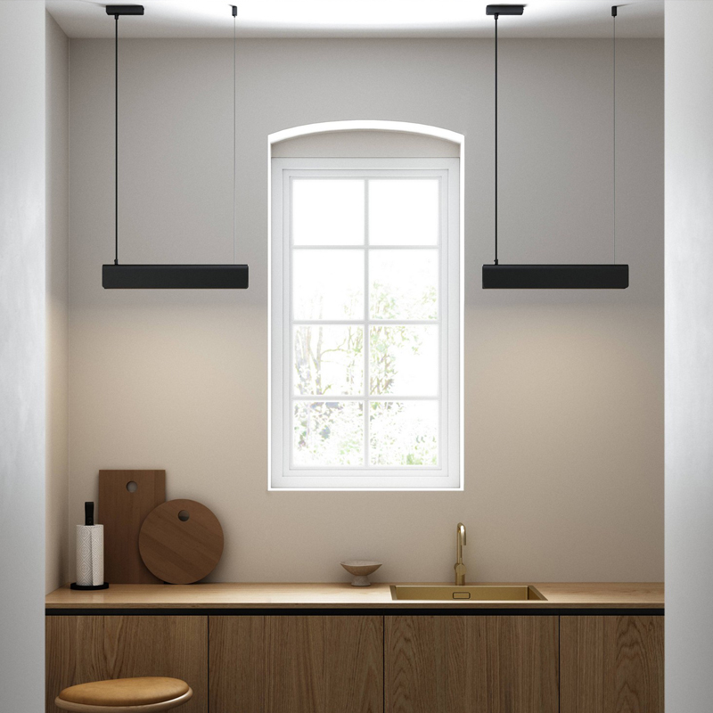 Designed by Danish design studio Mavro/Lefèvre, the Beau pendant has a slim, minimalist design that provides ample task lighting and looks beautiful above a dining table or in the kitchen.