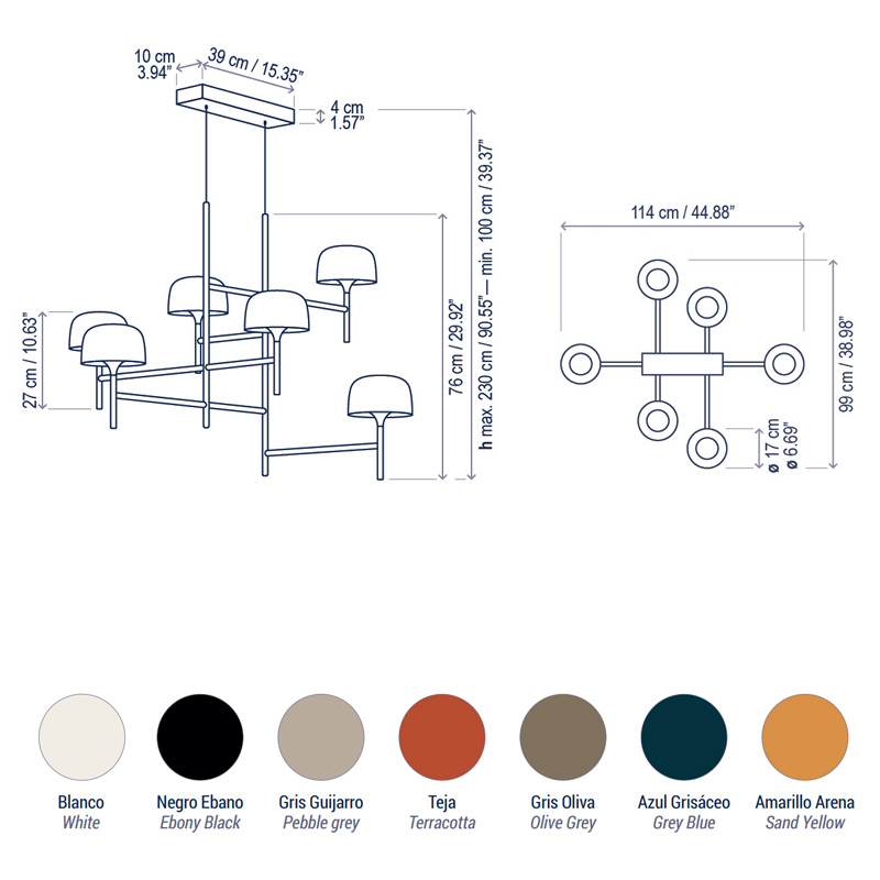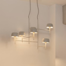 Inspired by the classic Maria Theresa chandeliers, the concept of the Bol emerged as a large, contemporary chandelier whose charm resides in its opaque body and the upper and lower light path emitted by its shades. The central structure of Bol lamps comprises different stems and shade bodies that can be connected to one another via a central pole. This allows different figures to be devised, both horizontally and vertically, even continuous sequences.