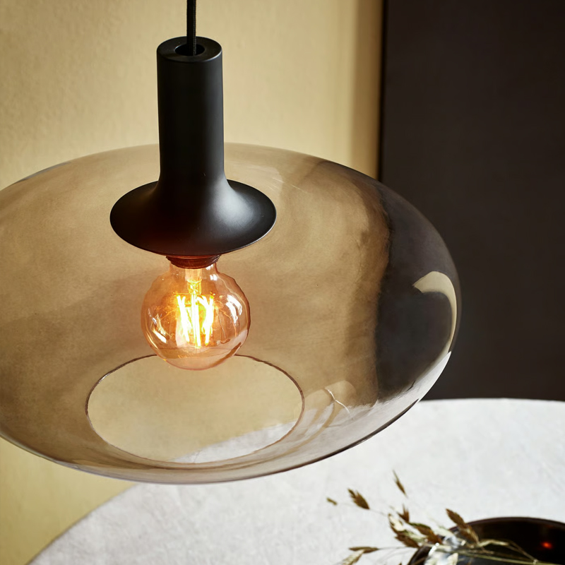 In smoked glass, Alton creates a beautiful coherence between the black top, and the sweeping curved shape, which makes the series elegant and stylish. Each hand-crafted glass piece is unique, adding a touch of artistry to your home.