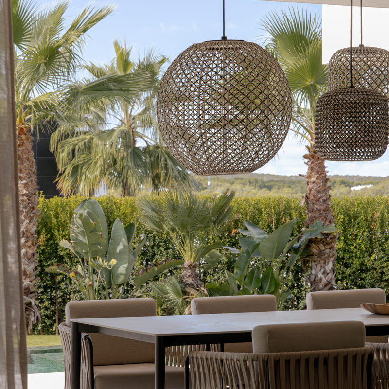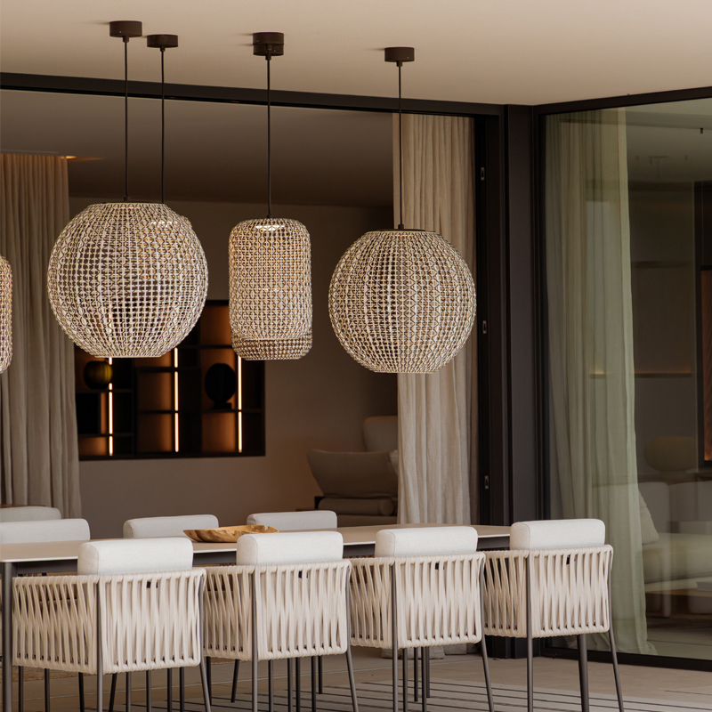 The design intent of the Nans collection was to highlight the craftsmanship of the lampshades and to explore different ways of weaving, by combining different colours and formats to create a true Mediterranean style.