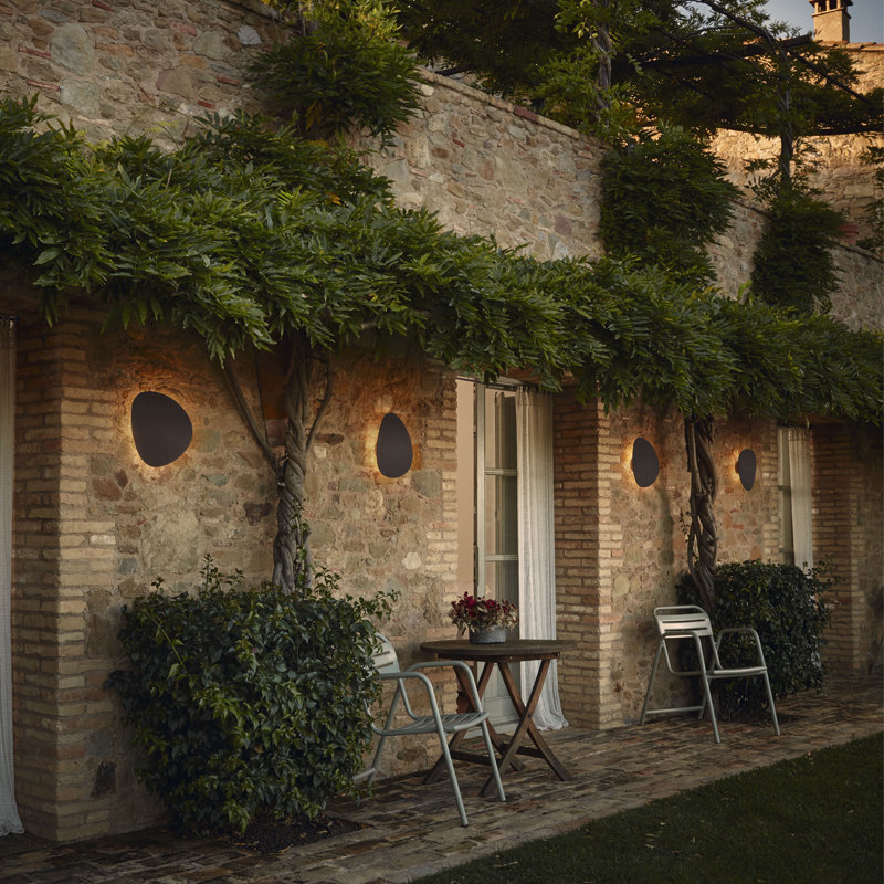 Inspired by organic, pebble-like forms, the Tria wall light adds warmth and character to exterior walls. Its sculptural design creates a soft glow that highlights textures and enhances outdoor spaces with natural elegance.
