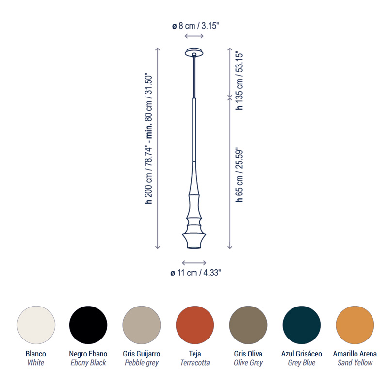 Dimensions: Ø 110mm x H 650mm | 2000mm Max Hang Height