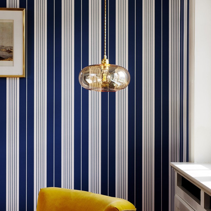 A blend of mouth-blown glass and metal finishes in a variety of colours.