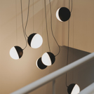 Inspired by lunar phases, the Half collection plays with geometry and contrast through its adjustable, semi-circular diffuser and bold silhouette. Emitting soft, even light, it's ideal as a statement piece in stairwells, entryways or open spaces.