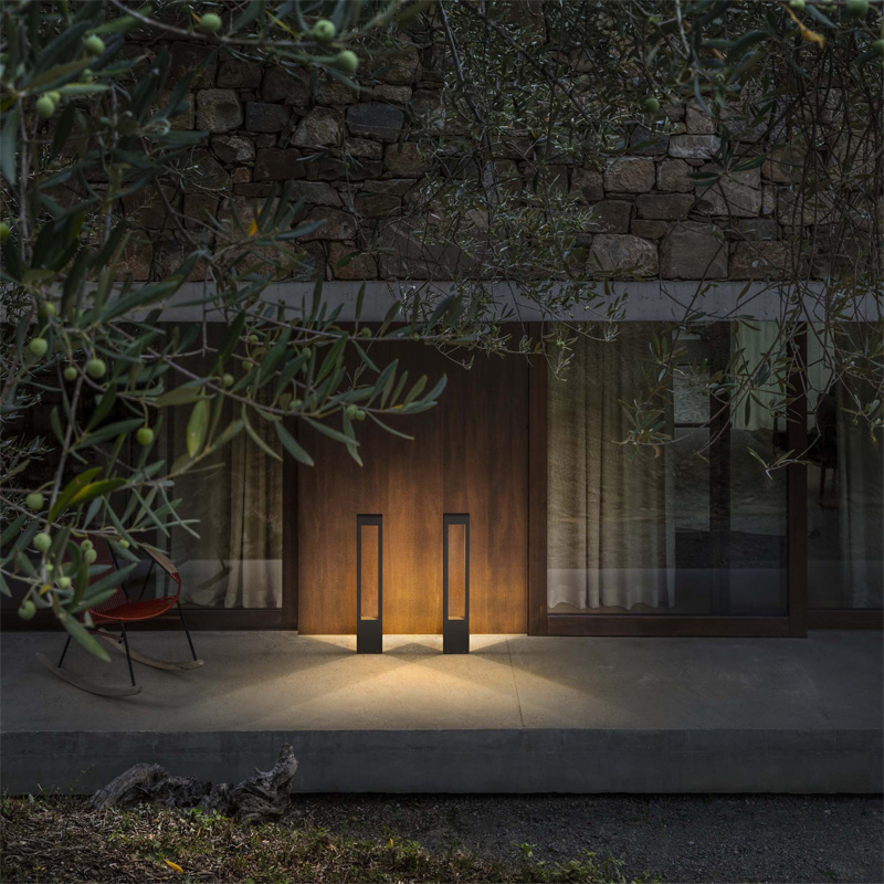 The Vega Outdoor Bollard features a modern geometric frame that creates striking light patterns while enhancing pathways and entrances. Durable and stylish, it offers both functional illumination and architectural appeal for outdoor spaces.