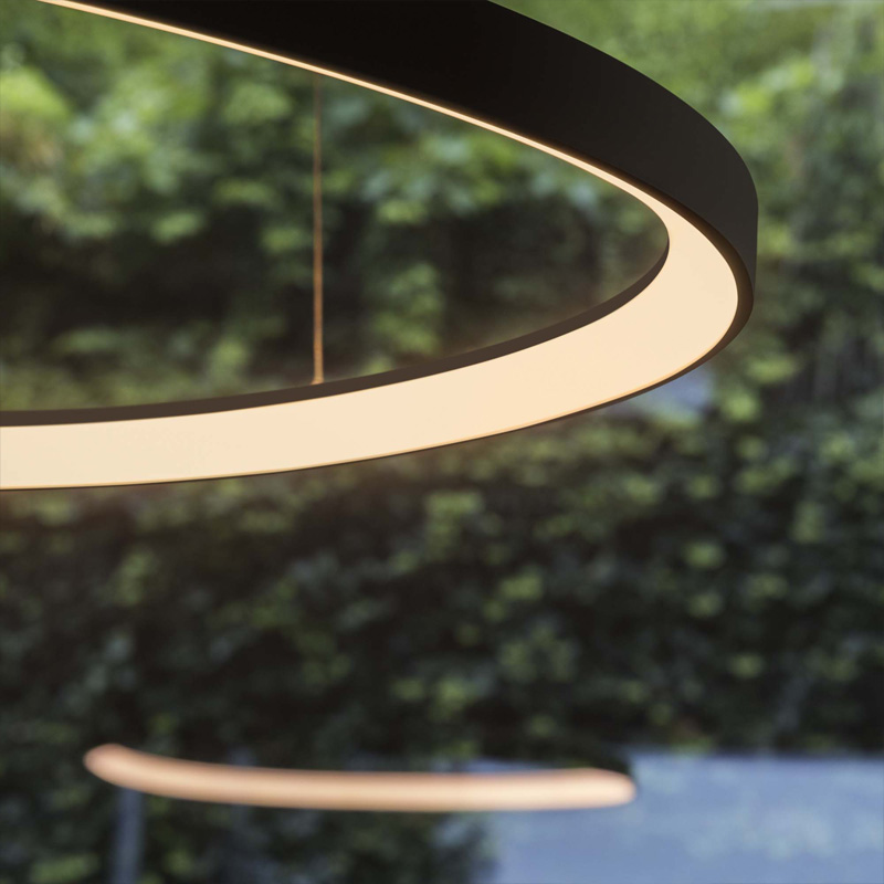 The Gemini Pendant features a striking circular form with integrated LED light, casting a soft, even glow. Perfect as a statement piece, it blends sculptural design with modern elegance for contemporary interiors.
