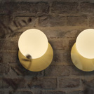 With its soft, rounded glass diffuser, the Ninfea wall light brings a gentle glow to bathrooms and living spaces alike. Sold individually with a choice of white or brass base, it’s a simple yet elegant accent that adds warmth and character to any wall.