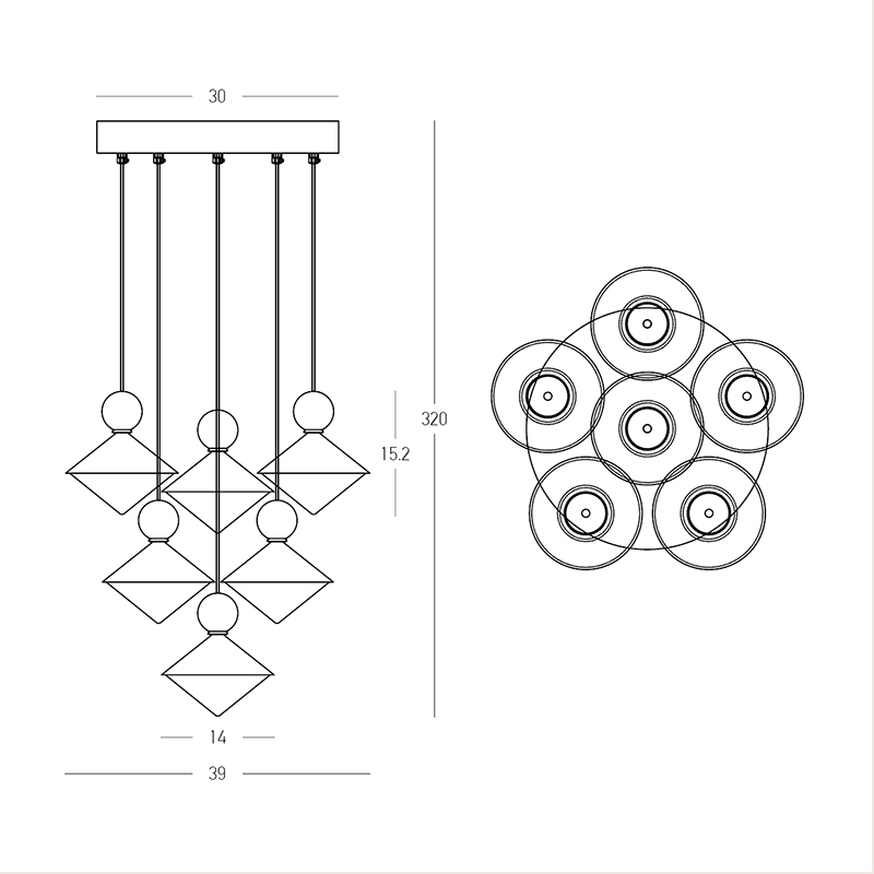 The Lyra Collection pairs sculptural geometry with celestial softness, featuring cone diffusers balanced by coloured spherical accents for a playful yet refined expression of light.