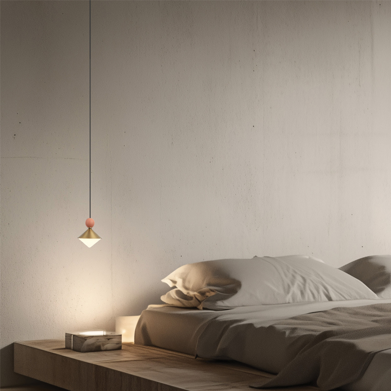 The Lyra Collection pairs sculptural geometry with celestial softness, featuring cone diffusers balanced by coloured spherical accents for a playful yet refined expression of light.