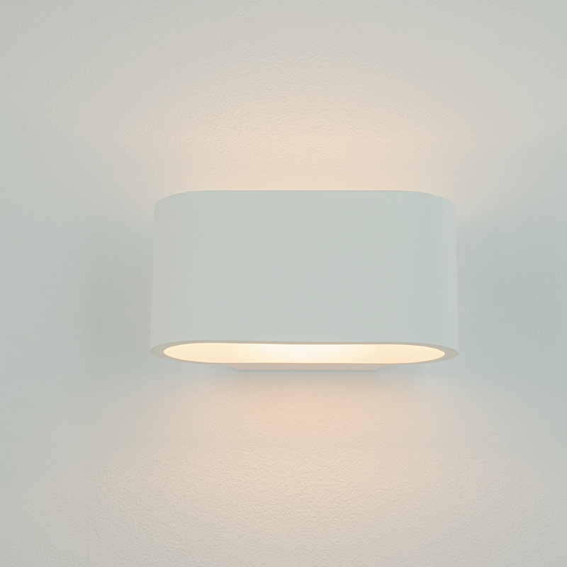 The Olympia Collection spans both gypsum and concrete materials, showcased in a range of architectural wall lights that balance minimal geometry with the timeless character of Olympia. Crafted from Gypsum, the Olympia Ellipse features a gently curved, elongated profile that washes light softly up and down, offering a smooth, contemporary accent suited to hallways, living spaces and refined architectural interiors.