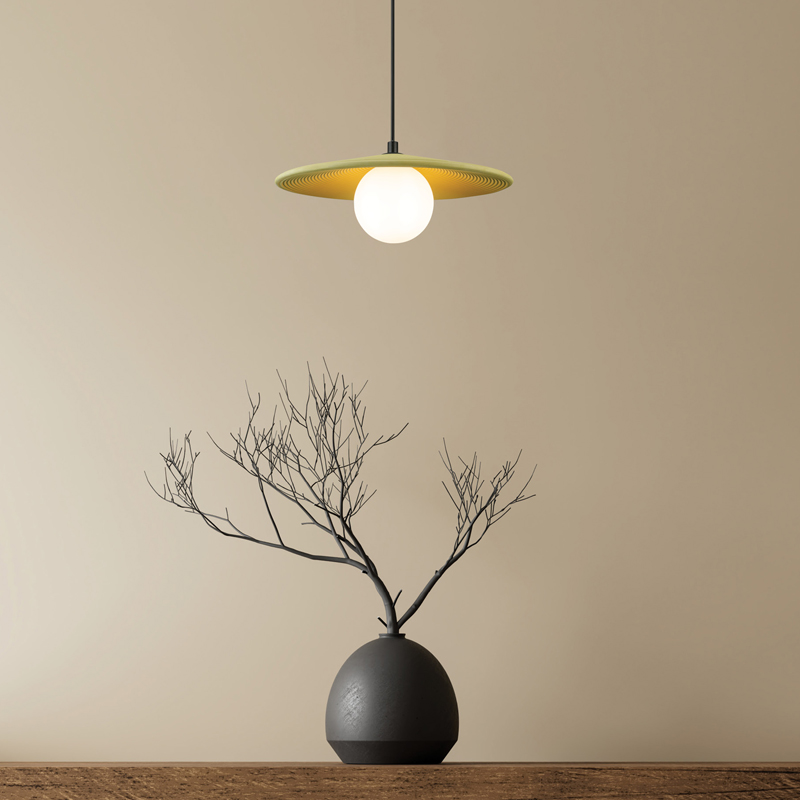 Inspired by the flared shape of the Greek phiale bowl, the Phiale Pendant combines a sculptural ceramic shade with a glowing orb diffuser. Its refined, upward-flaring form creates a warm, atmospheric presence in both residential and architectural spaces.
